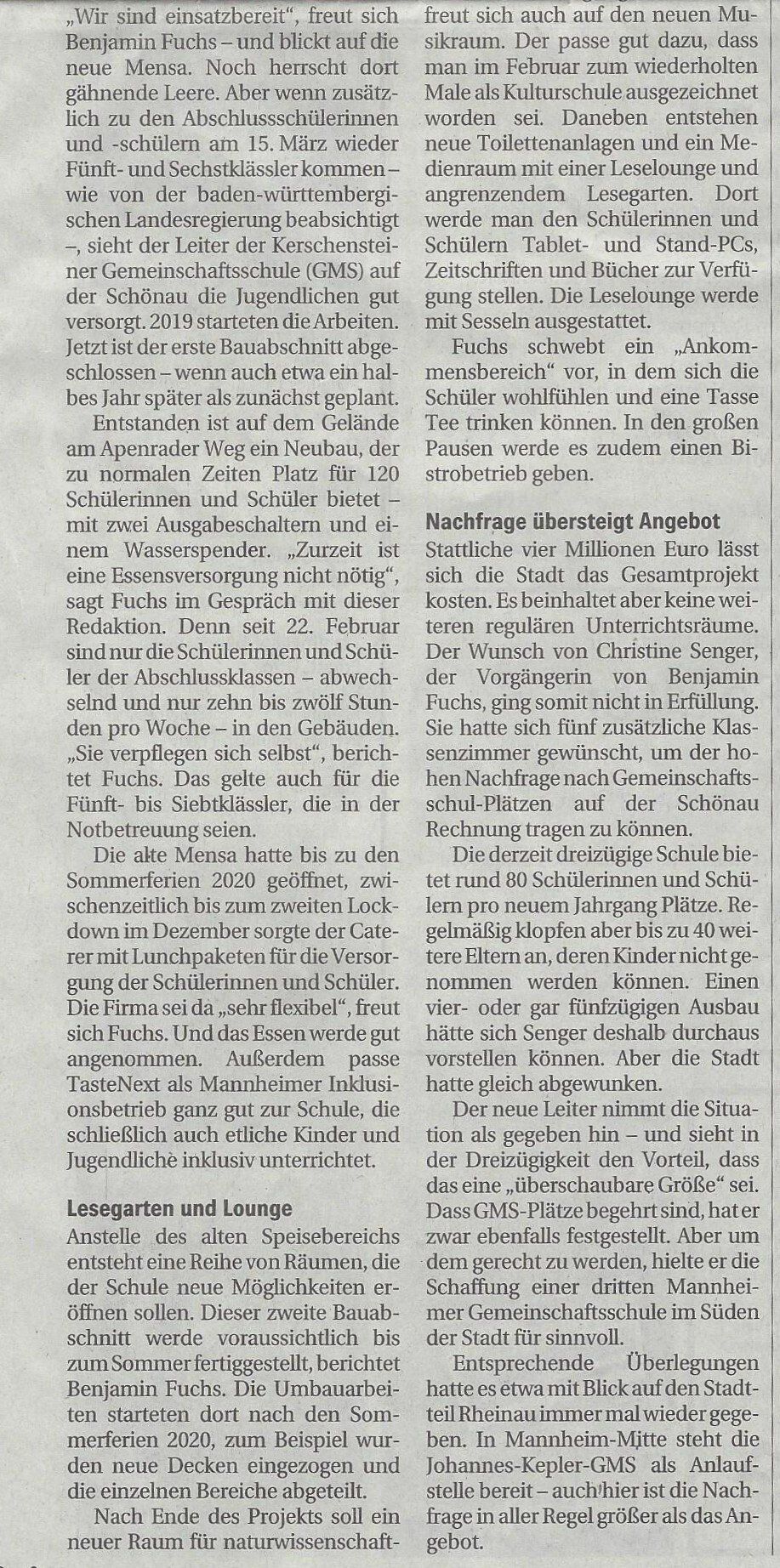 Der Mannheimer Morgen berichtet über unsere neue Mensa